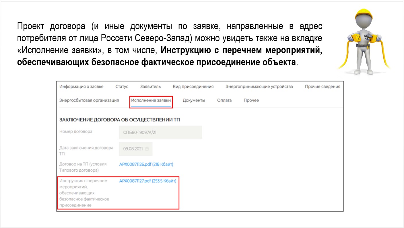 - инструкция, содержащая последовательный перечень мероприятий, обеспечивающих безопасное осуществление действиями заявителя фактического присоединения и фактического приема (подачи) напряжения и мощности.