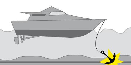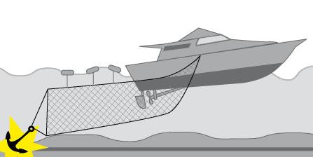 Запрещается бросать якоря с судов и осуществлять их проход с отданными якорями, цепями, лотами, волокушами и тралами.