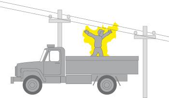 Также опасно приближаться к проводам ЛЭП, проезжая в открытом транспорте, в телеге, кузове автомобиля.